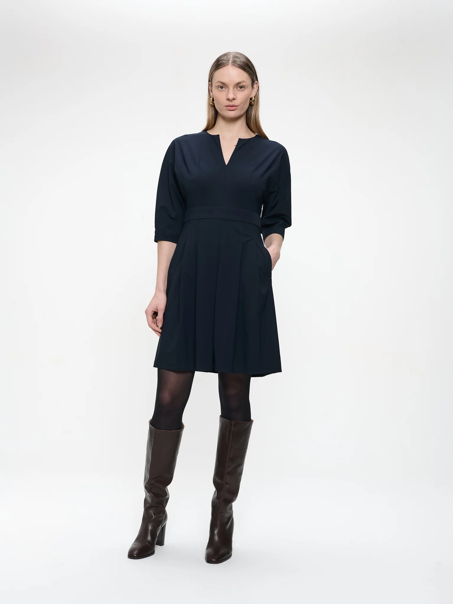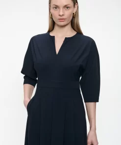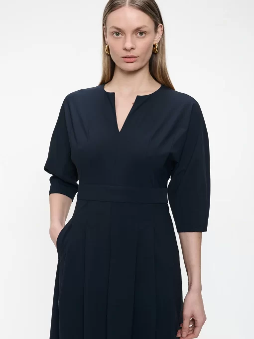 Chic and feminine, the Gaara Dress Short is a flattering option for every day or dressed-up moments. Crafted from technical jersey, this dress combines a clean A-line silhouette with sharp pleats and a notched V-neckline. The elbow-length sleeves and soft drape ensure comfort without compromising on elegance.